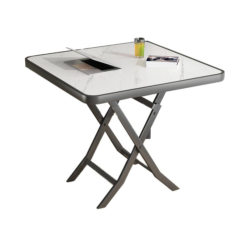 Modern White Foldable Dining Table Wood Tabletop with Metal Legs