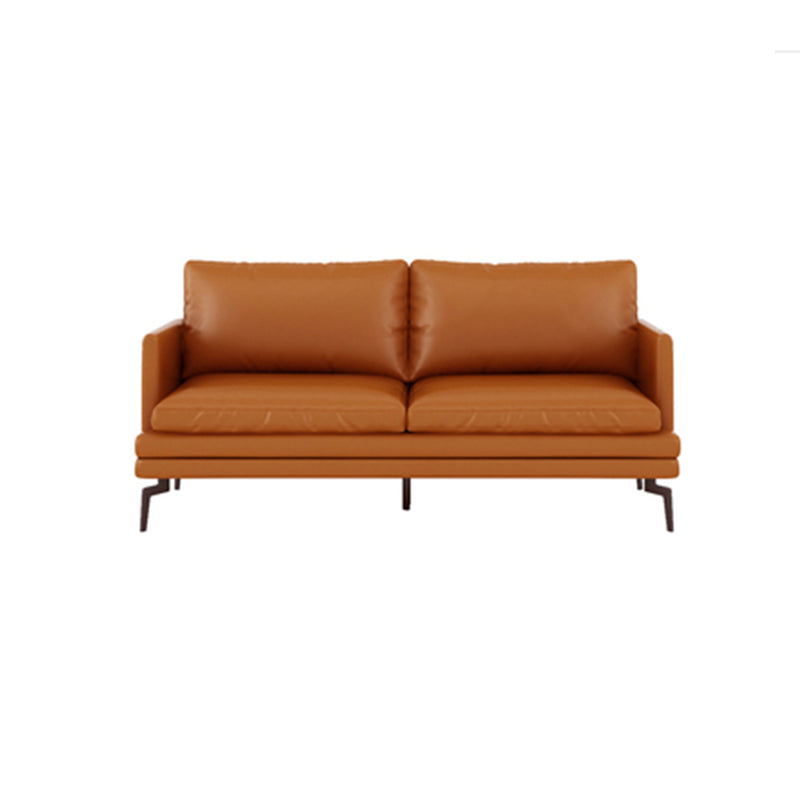Ornate Leather Upholstery Orange Sofa with Pillow and Square Armrest Back Sectional