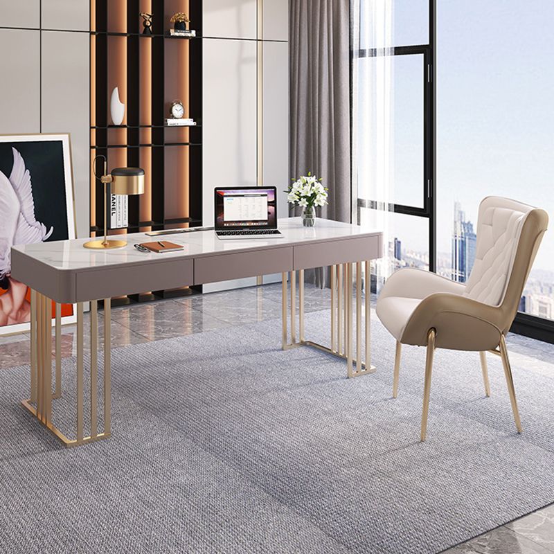 Rectangular Pewter Office Desk Glam Built in Outlets Writing Desk with Drawers