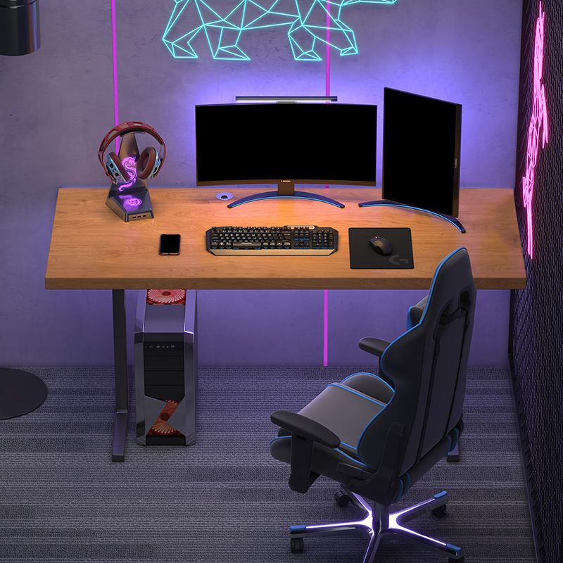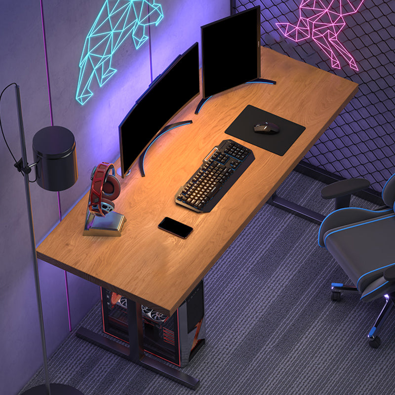 Rectangular Pine Wood Computer Desk T-Shape Base Dormitory Office Desk