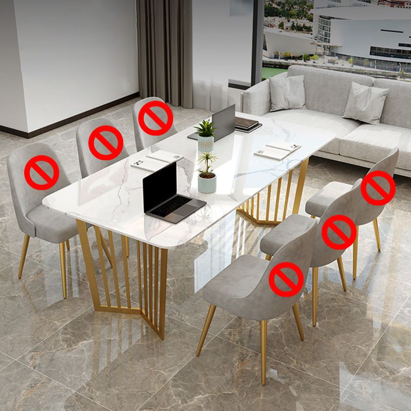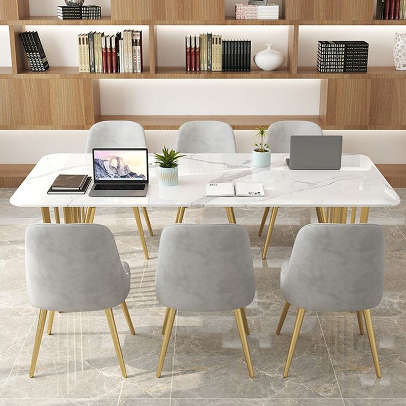 Rectangular Shaped Office Task Desk Stone Writing Desk in White and Gold for Office