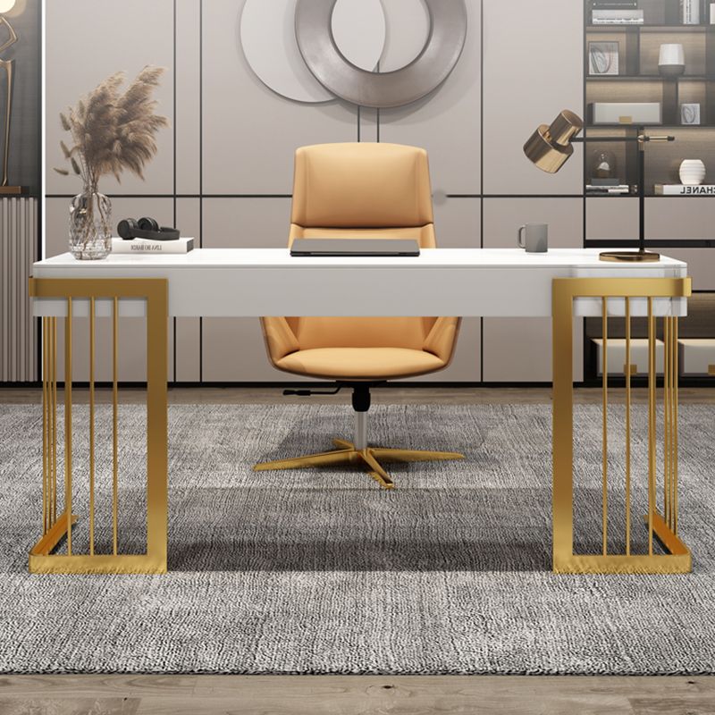 Rectangular Writing Desk Stainless Steel and Artificial Wood Office Desk Glam
