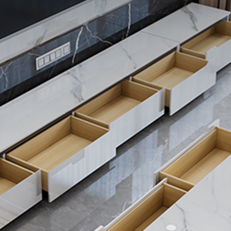 Slate and Wood TV Cabinet Modern Style Home Minimalist Closed TV Stand Console