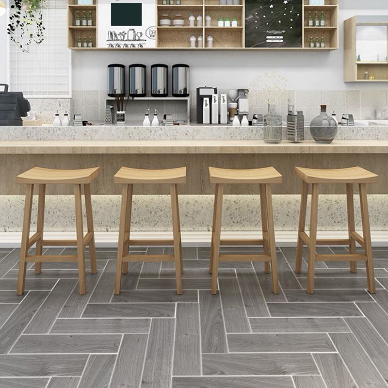 Solid Wood Backless Counter Stool Modern Armless Bar Stool with Wooden Footrest