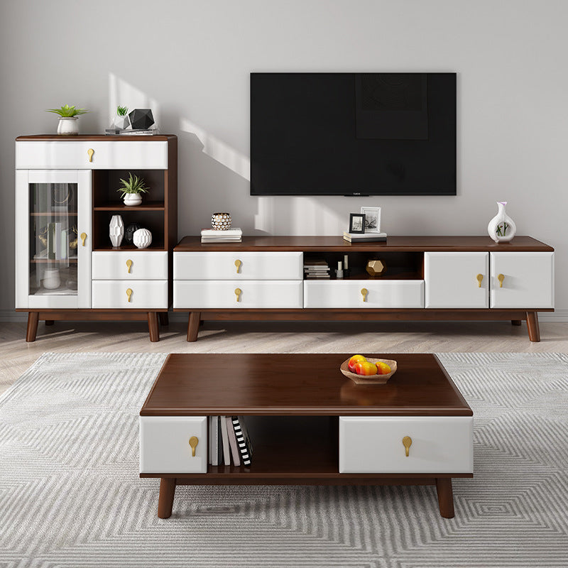 Solid Wood Stand Console Scandinavian TV Media Console with Drawers