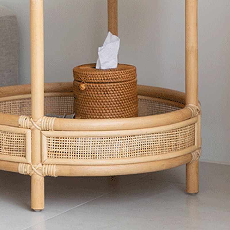 Tropical Round Cocktail Table Light Wood Coffee Cocktail Table with Storage