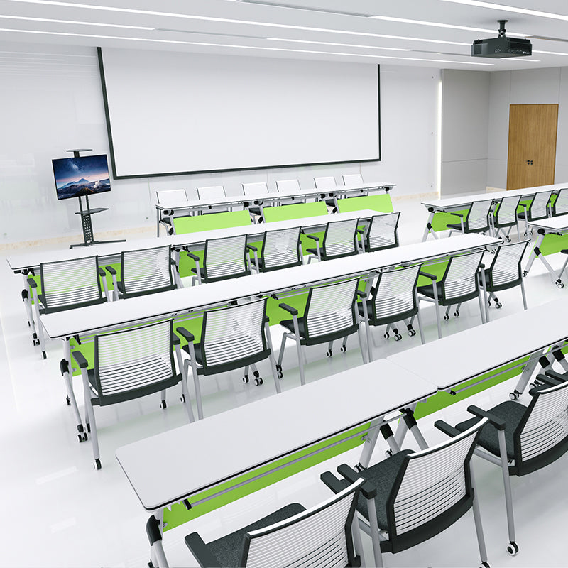 White Folding Office Desk Modern Wooden Training Desk with Wheels