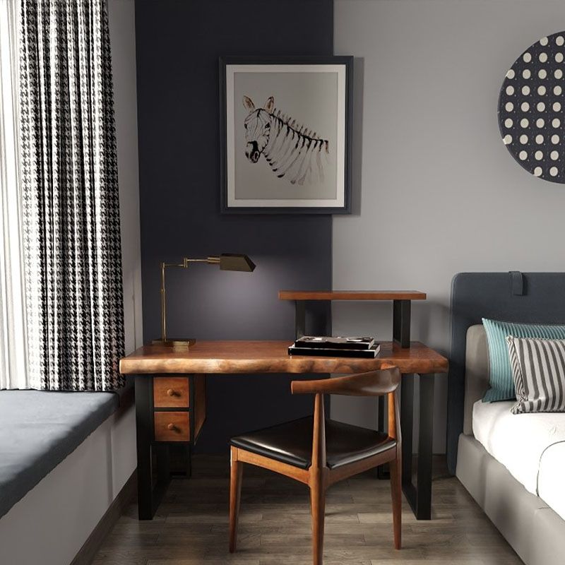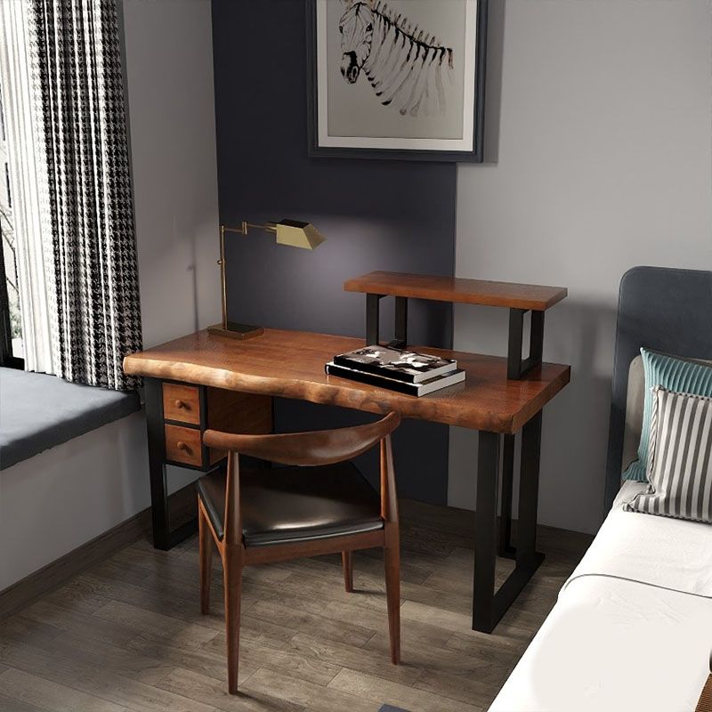 Wood Industrial Computer Desk Rectangular Office Desk with Metal Legs