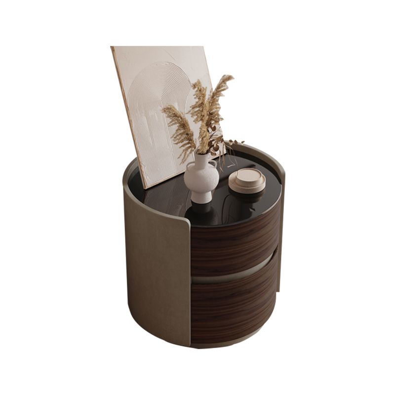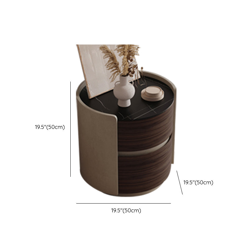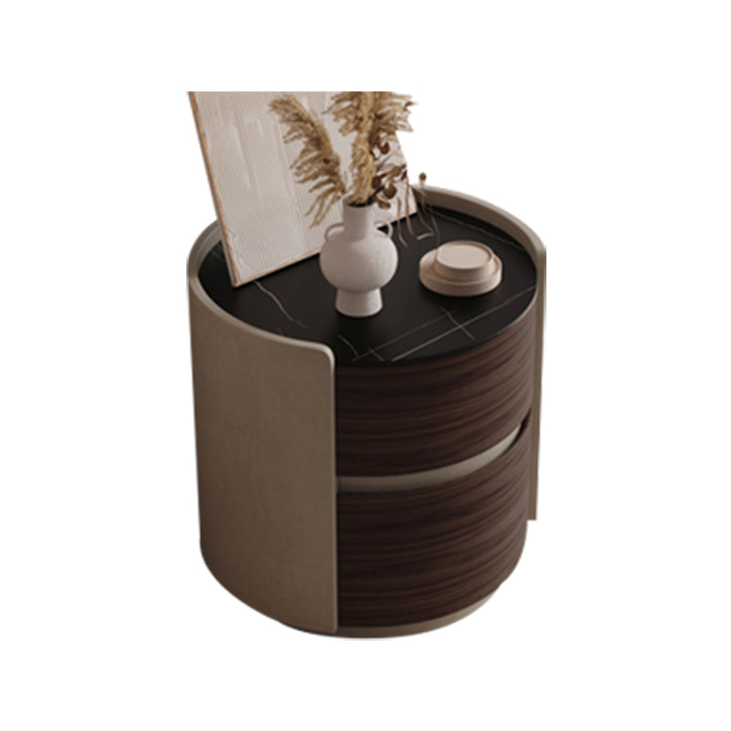 2 Drawers Contemporary Night Table Antique Finish Bedside Cabinet