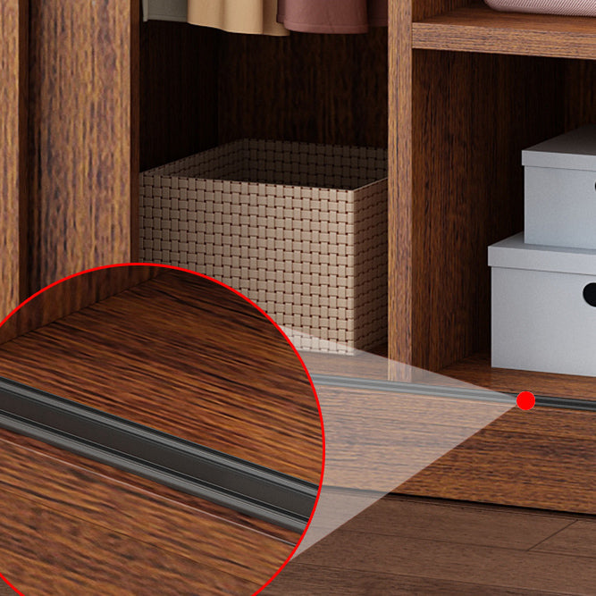 Artificial Wood Wardrobe Brown Wardrobe with Sliding Doors for Bedroom