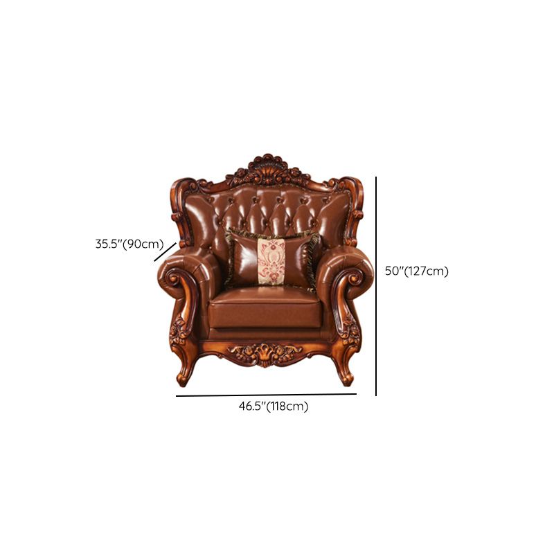 Classic Tufted Split-Back Seating Flared Arm Sofa with Pillows in Brown