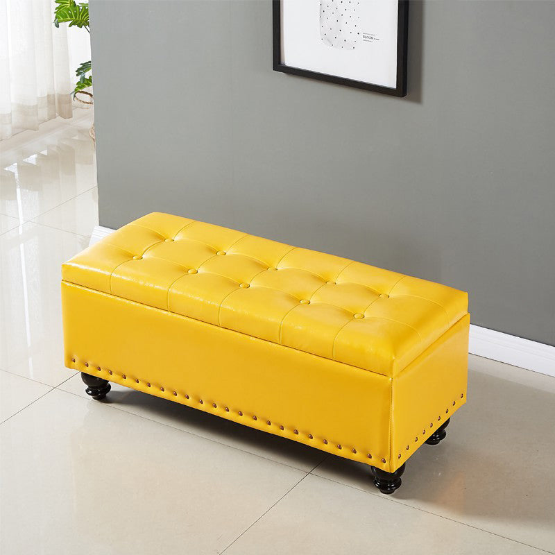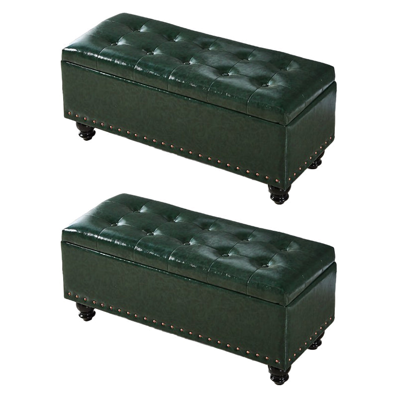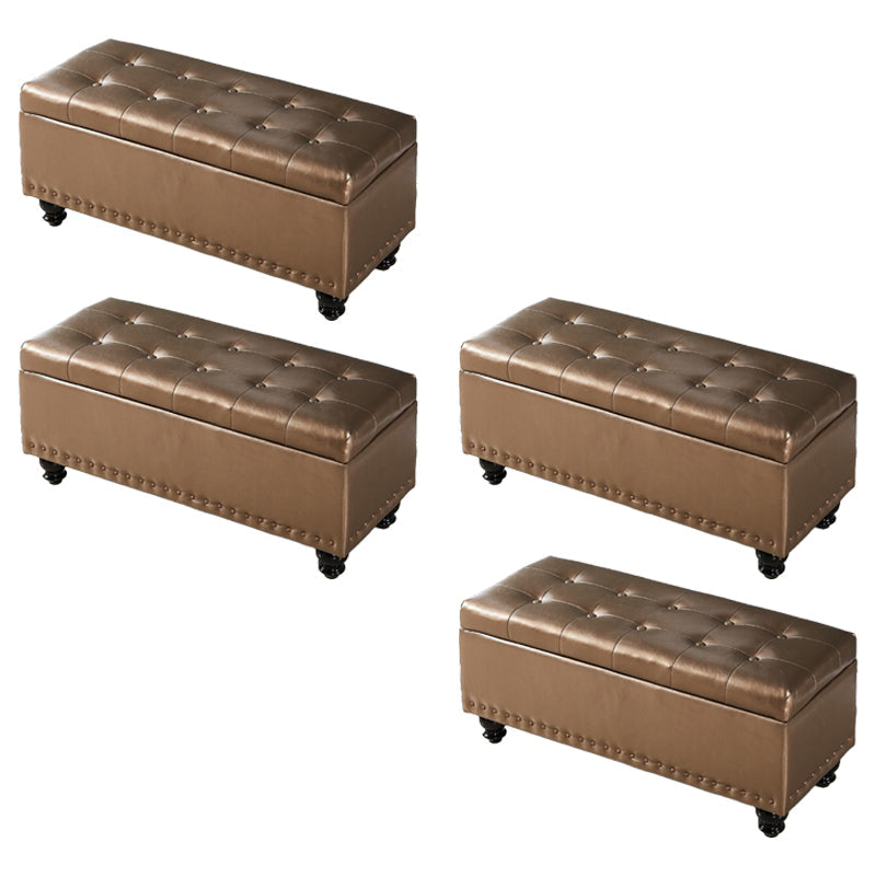Contemporary Pouf Ottoman PU Leather Nailhead Trim Tufted Square Ottoman with Storage