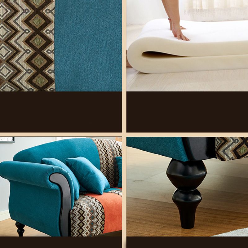 Contemporary Sewn Pillow Back Sofa Rolled Arm Settee for Living Room