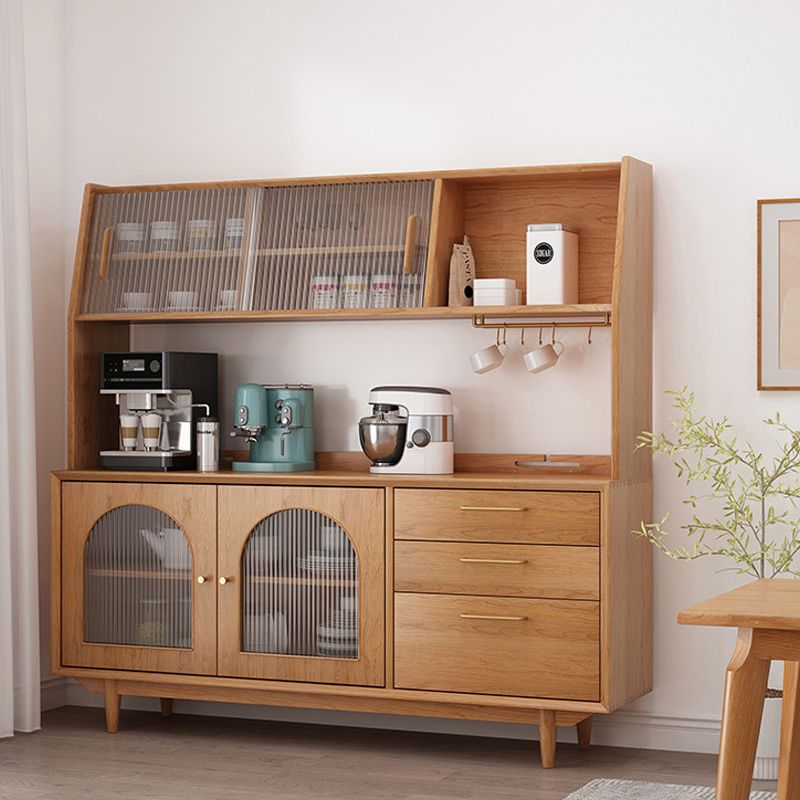 Contemporary Solid Wooden Hutch Buffet 66" H Glass Door Dining Hutch for Dining Room
