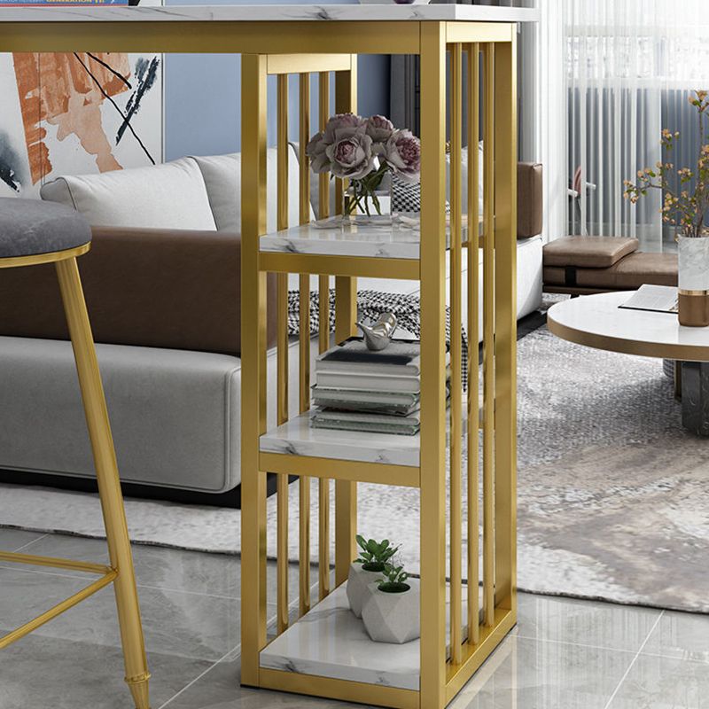 Faux Marble Counter Height Bar Table Glam Metal Base Counter Wine Table