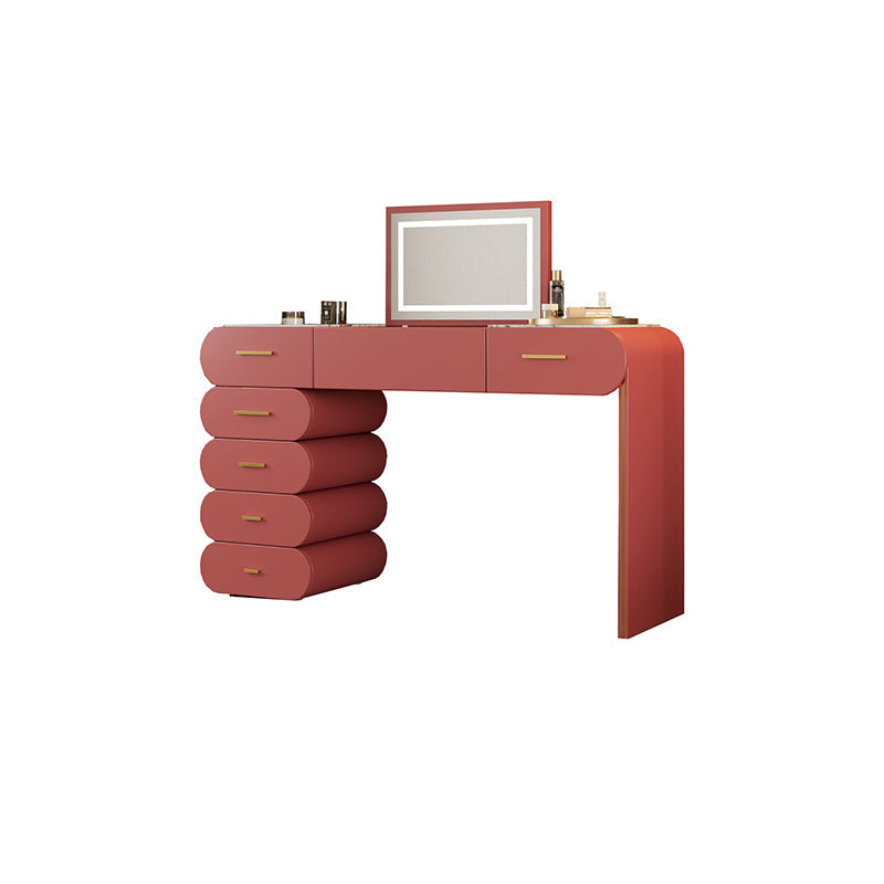 Flip Single Mirror Dresser Stone Top Vanity Desk with 6 Drawers