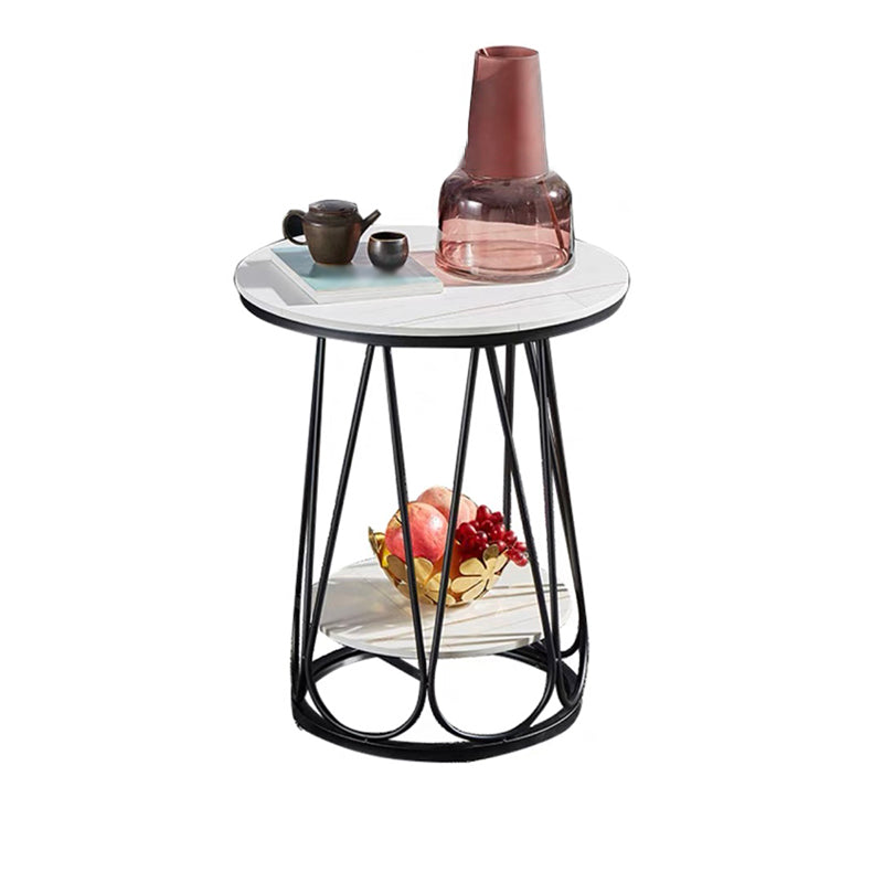 Frame Steel Tube Base Designed with Round Table Top Made of Rock PlateSide Table