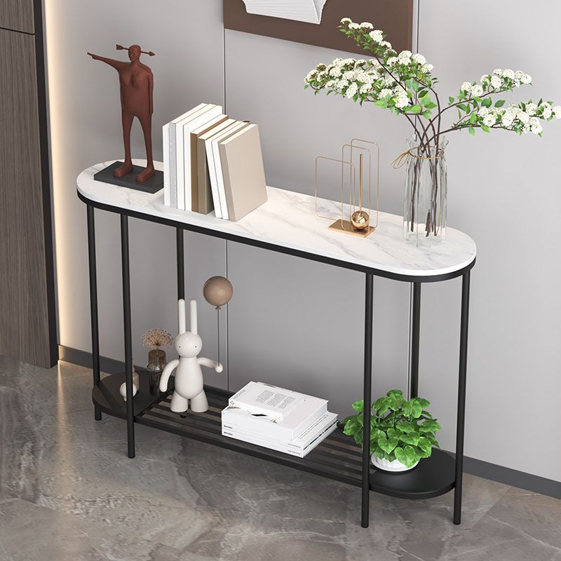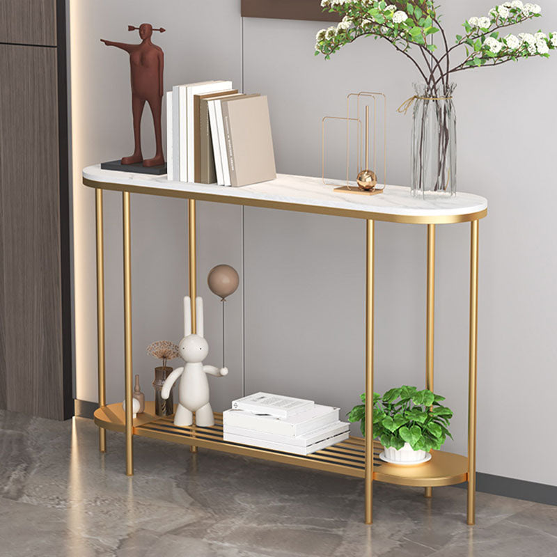 Glam Marble Console Table Oval Shape Shelves 12" W Accent Table for Hall
