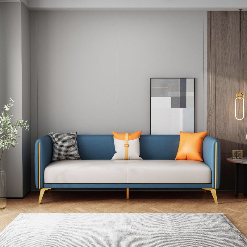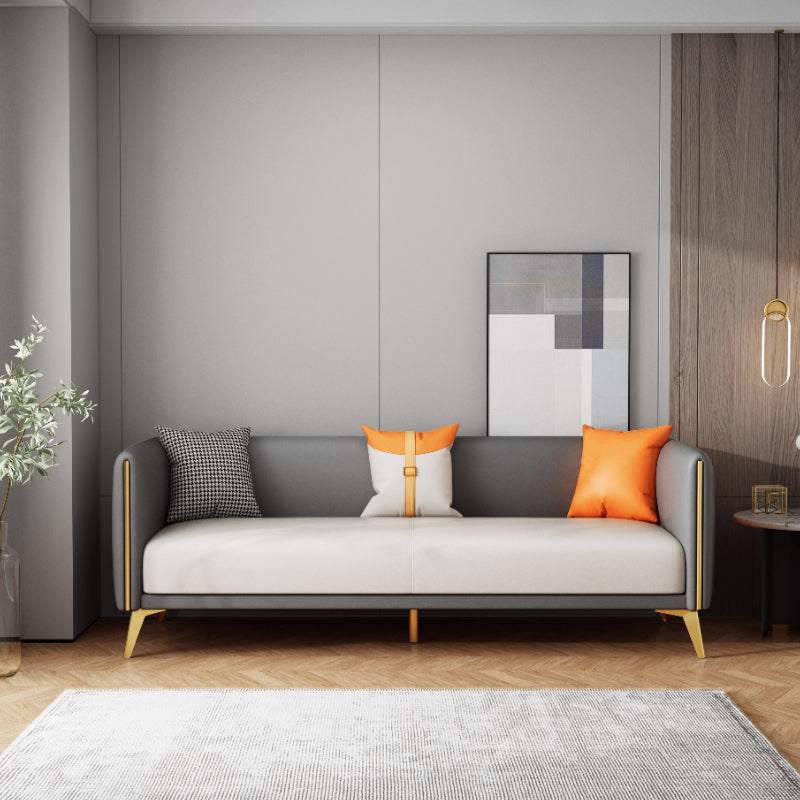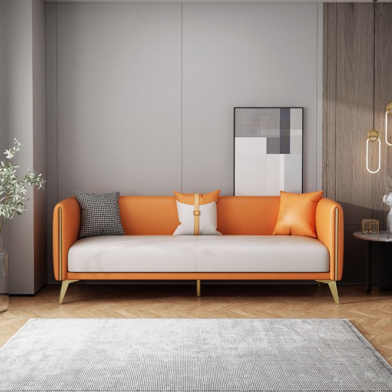 Glam Style 27.55" Wide Faux Leather 3 Seater Tuxedo Arm Sofa with Pillows