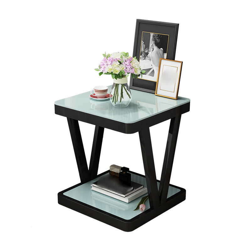 Glass Top Night Table Open Storage Steel Modern 2-Shelf Nightstand in Black/White