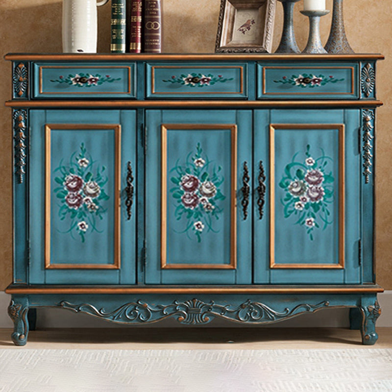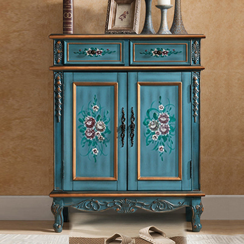 Industrial Cabriole Legs Accent Cabinet Solid Wood Oak Storage Cabinet with Drawer