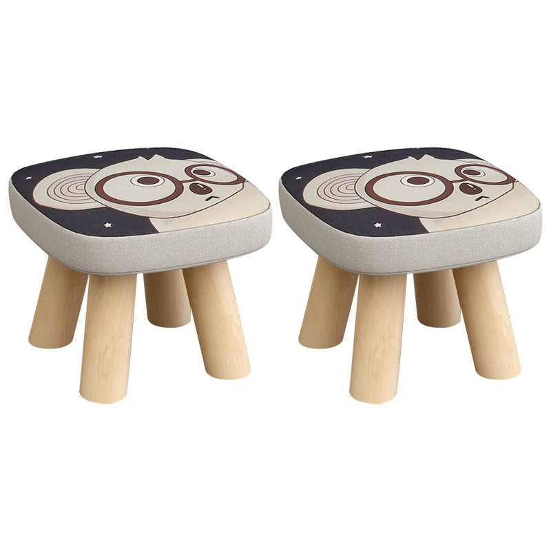 Linen Ottoman Animal Print with Four Legs Scratch Resistant Modern Square Cube Ottoman