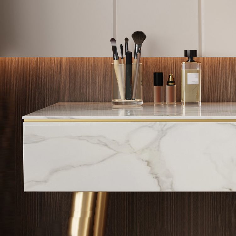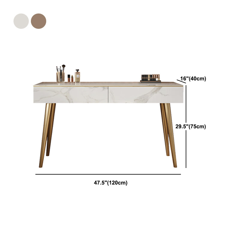 Metal and Stone Dressing Table Luxurious Double Drawers Stool Set