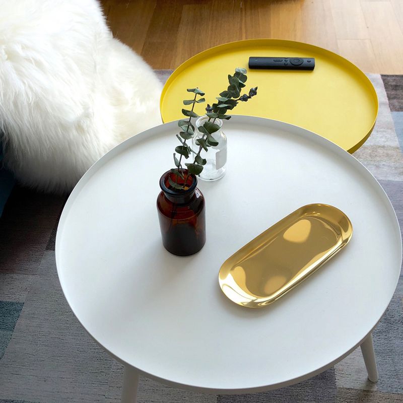 Metal Round 3 Legs End Table Minimalist Tray Top Accent Side Table