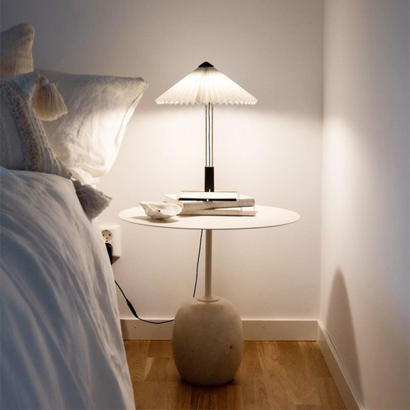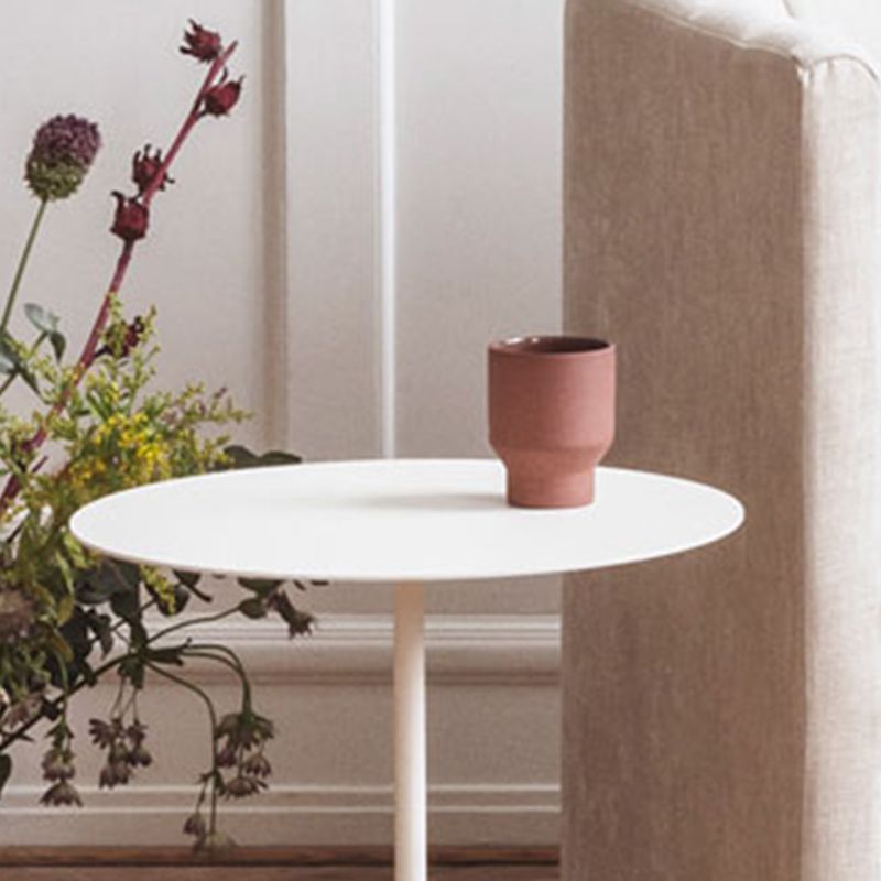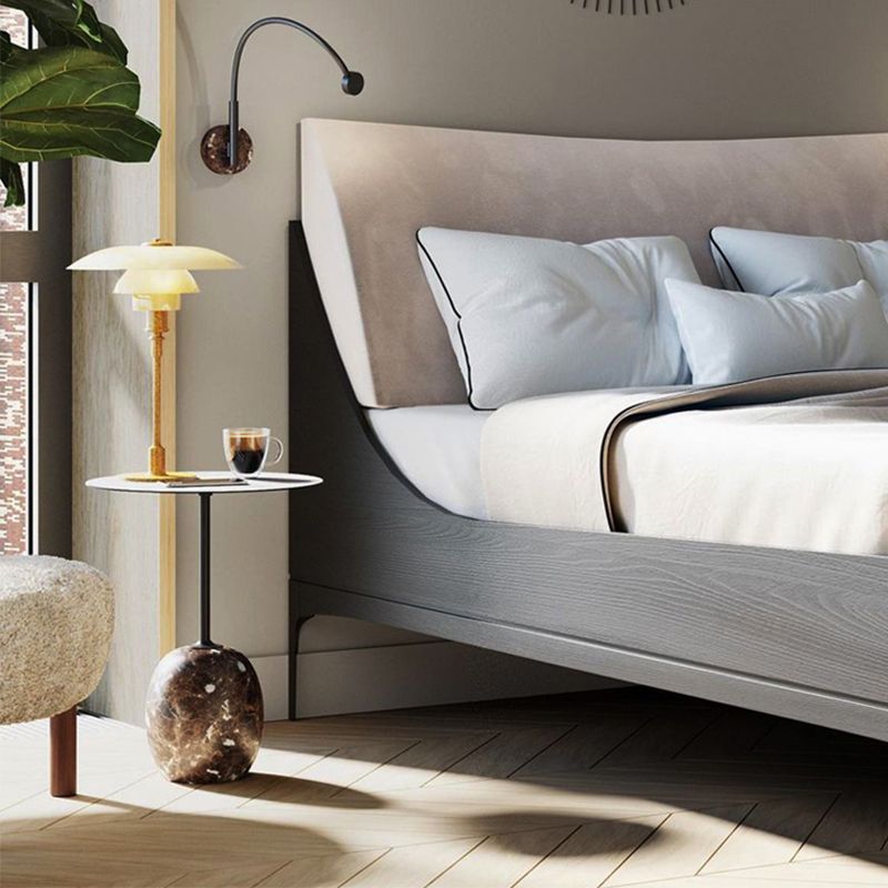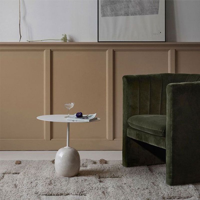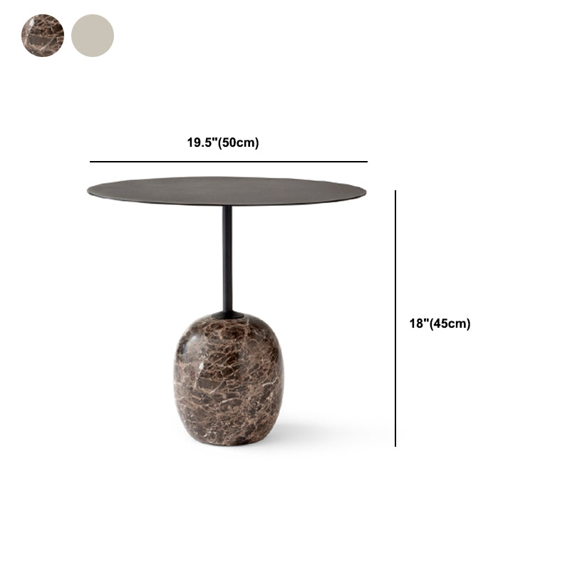 Mid-Century Metal Round Top Side Table Marble Pedestal End Table
