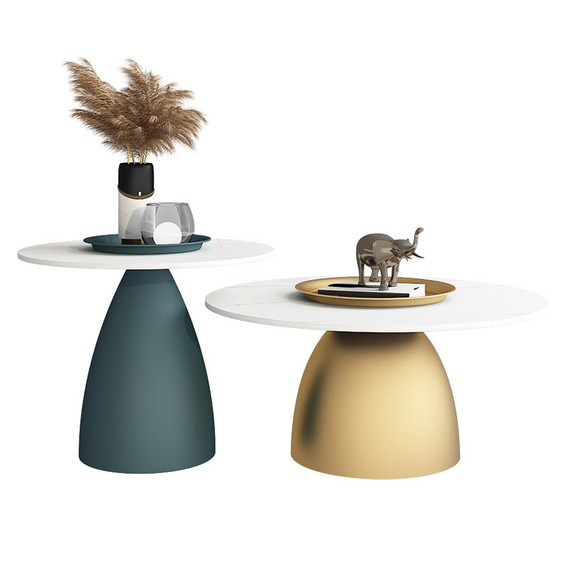 Mid-Century Modern Iron/Stone Coffee Table Dia 23.6"/31.5" Cocktail Table