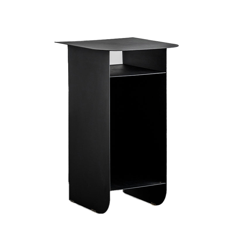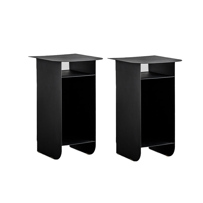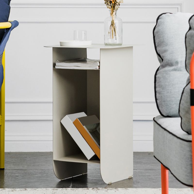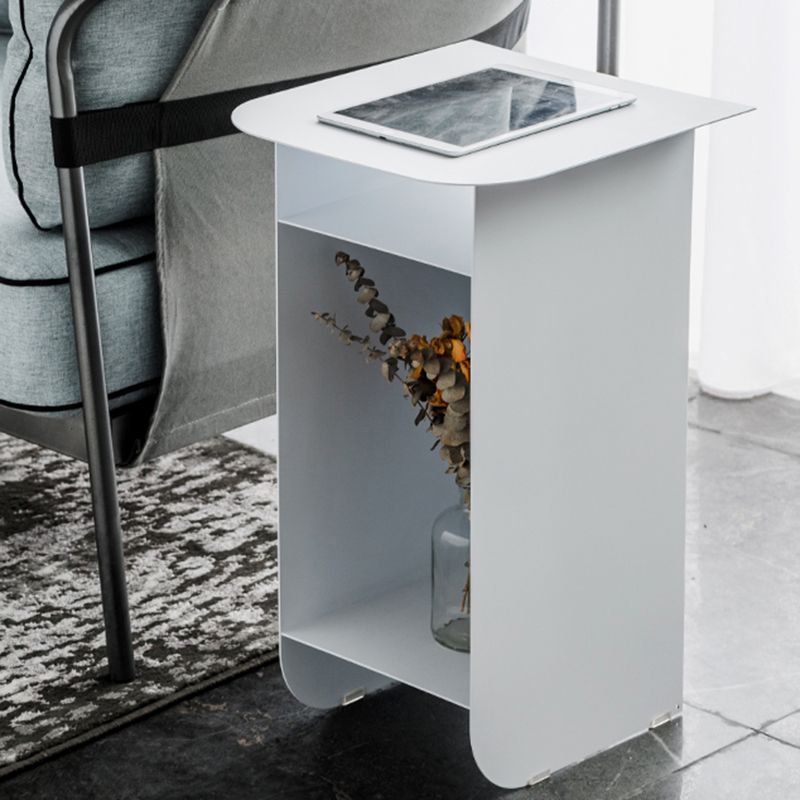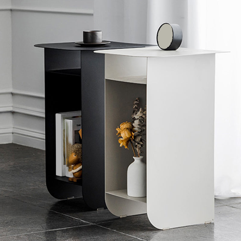 Mid-Century Rectangular Side Table Sled End Table with Shelves