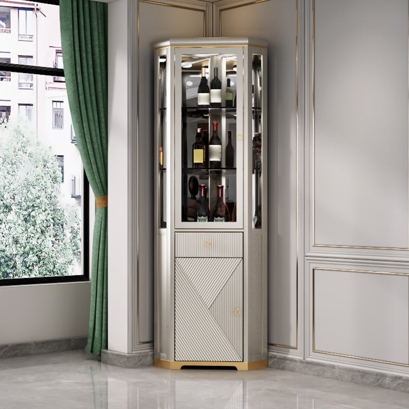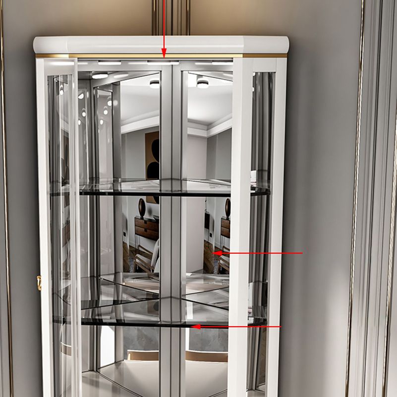 Modern Curio Cabinet Oil Oak Storage Cabinet with Lighting for Dining Room