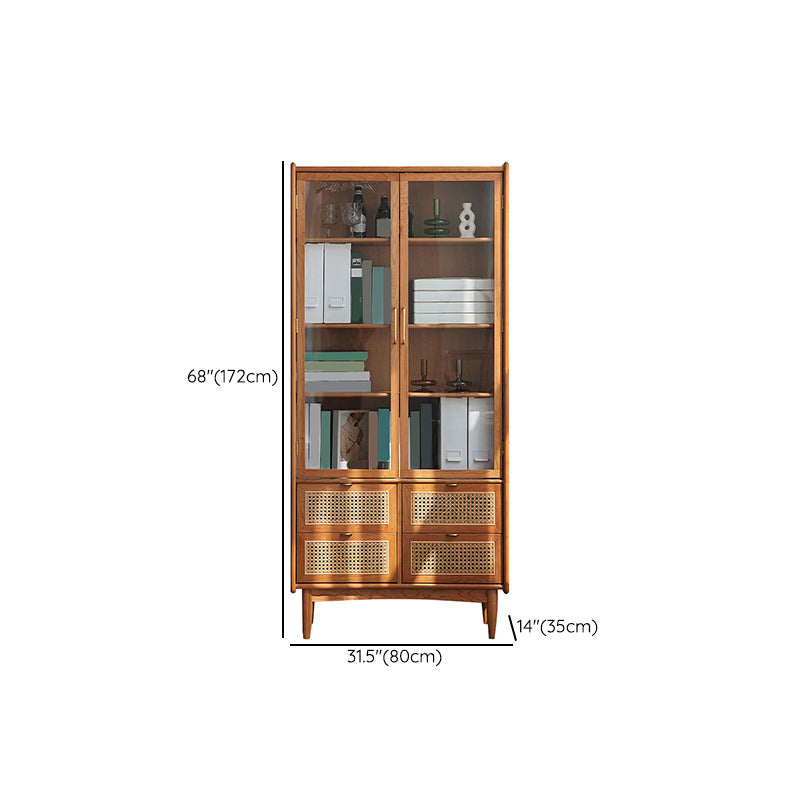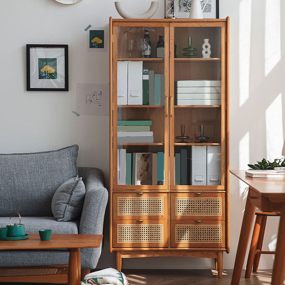 Modern Glass Doors Display Stand Pine Storage Cabinet with Doors for Living Room