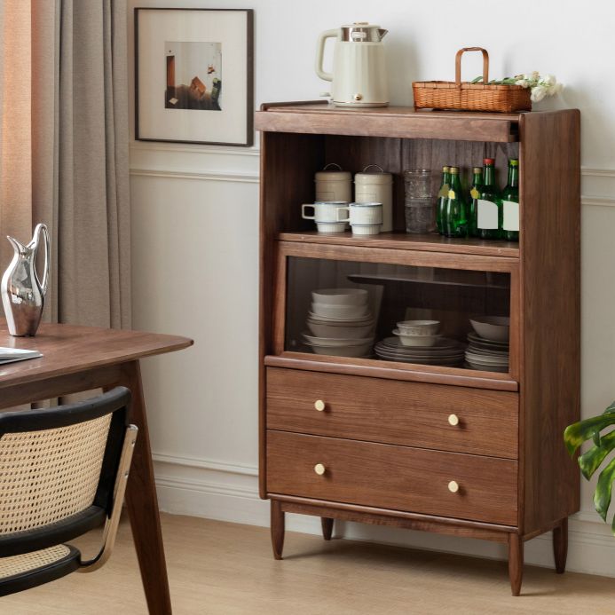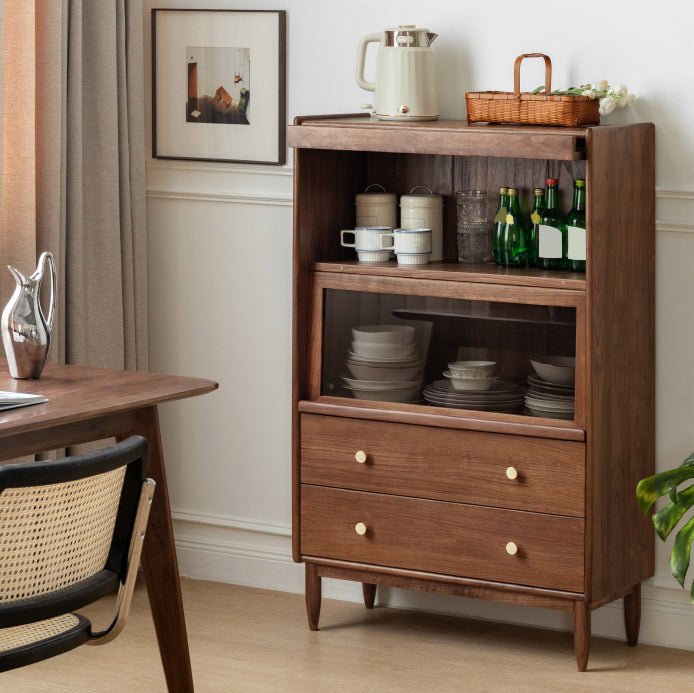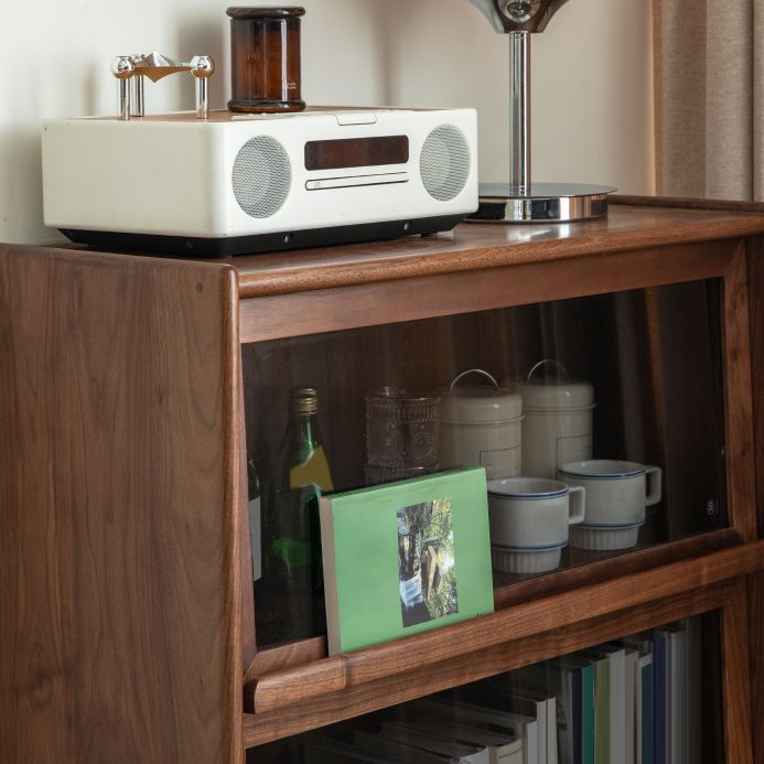 Modern Living Room Floor Cabinet Solid Wood Glass Doors with Lighting