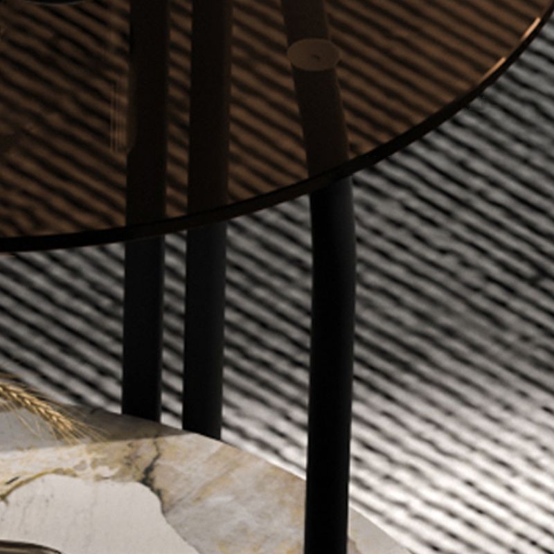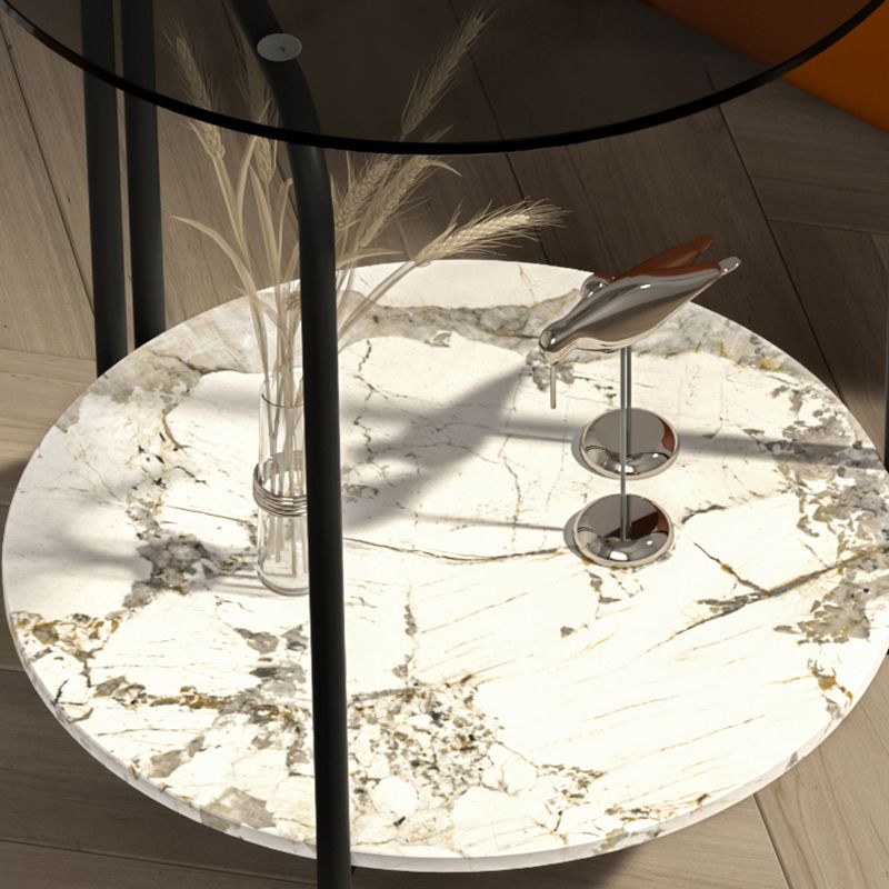 Modern Round Glass Side Table Dia 19.7" 4 Legs End Table with Shelf
