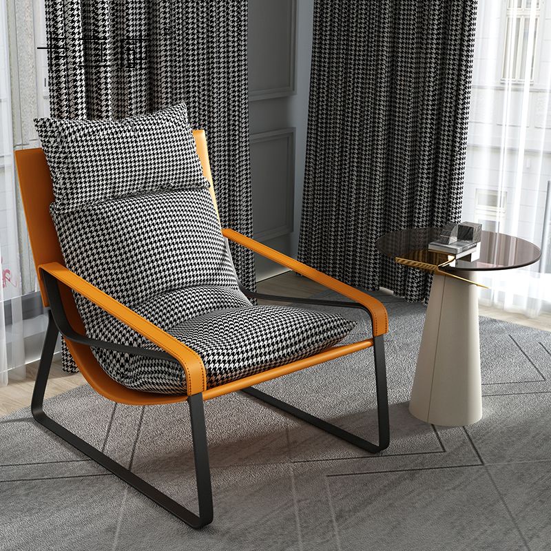 Modern Round Glass Top Side Table 21.65" Tall Leather Pedestal End Table