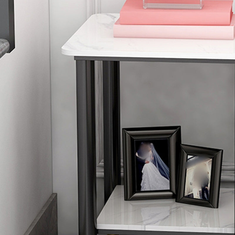 Modern Stone Top Nightstand 1-Shelf 22" H Metal Open Storage Bed Nightstand