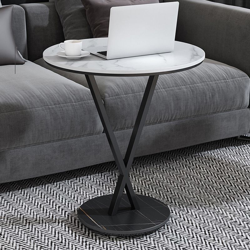 Modernistic Slate Top Round Side End Table Metal X-base End Table