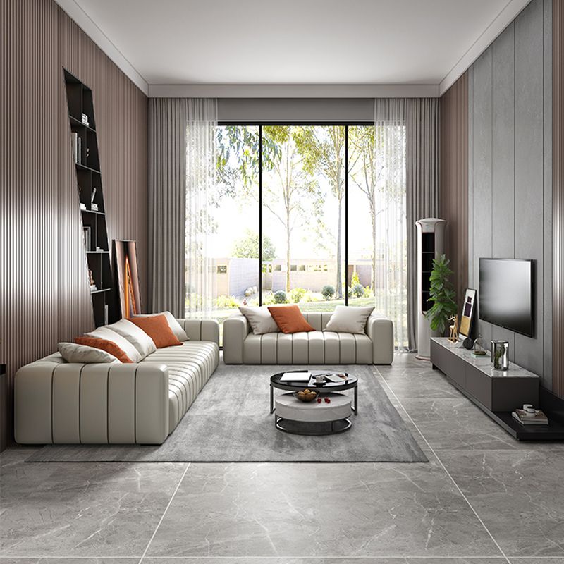 Modernistic Sofa Faux Leather Tufted Off-White Convertible Sofa for Living Room