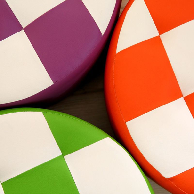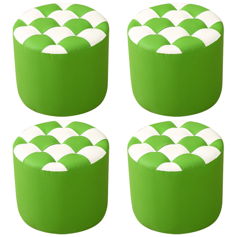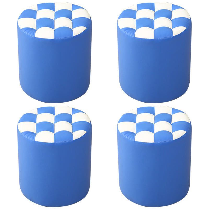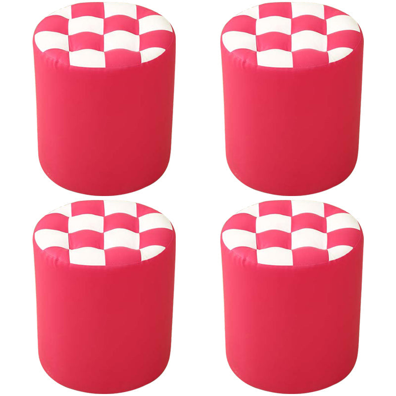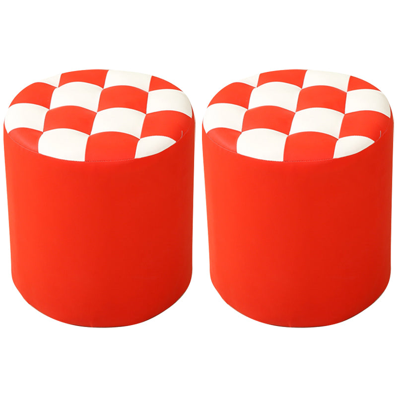 Ottoman Round Faux Leather Plaid Print Modern Tufted Tufted Ottoman