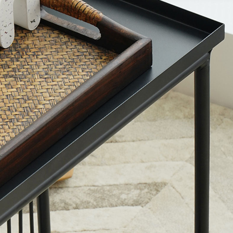 Rectangle Glass/ Metal Top Side Table 27.5" Tall 4 Legs End Table with Shelf
