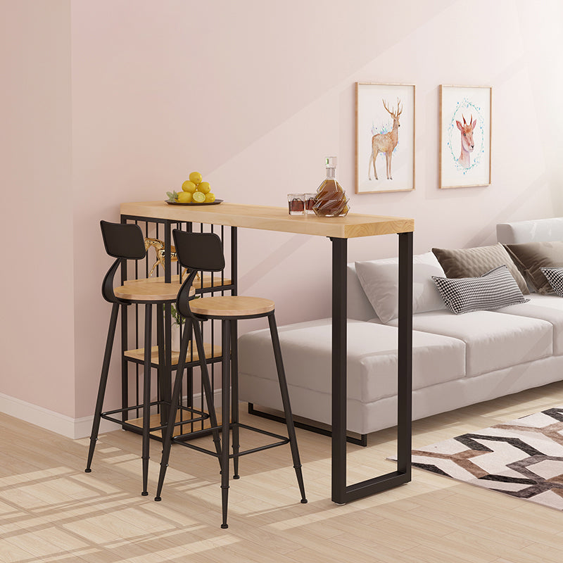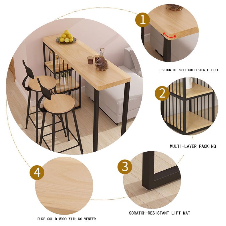 Rectangle Solid Wood Pub Table 3-shelf Pedestal Bar Height Bistro Table in Natural
