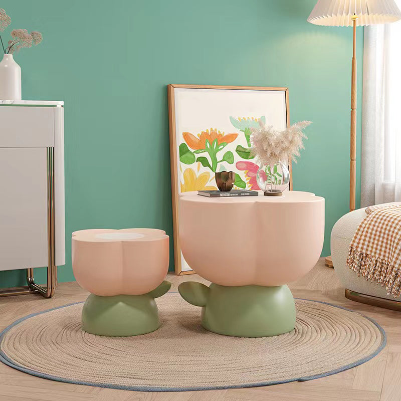 Resin Coffee or End Table in Flower Shape with 1 Legs Contemporary