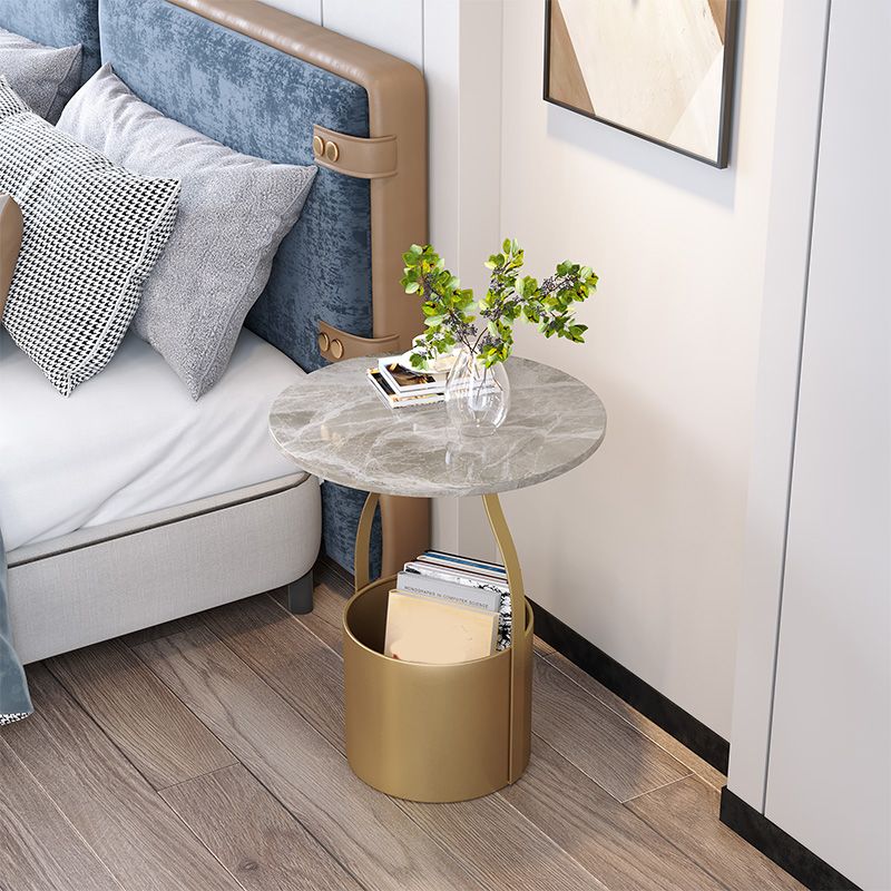 Round Stone and Iron Night Table Open Storage Bed Nightstand 17" H