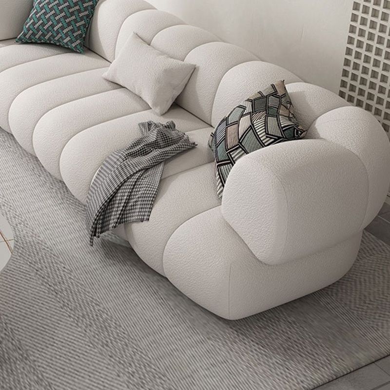 Scandinavian Fabric Sofa Biscuit Back Tuxedo Arm Sofa in White