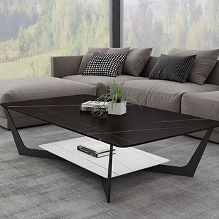 Slate Rectangular Coffee Table Modern Minimalist Cross Legs Coffee Table