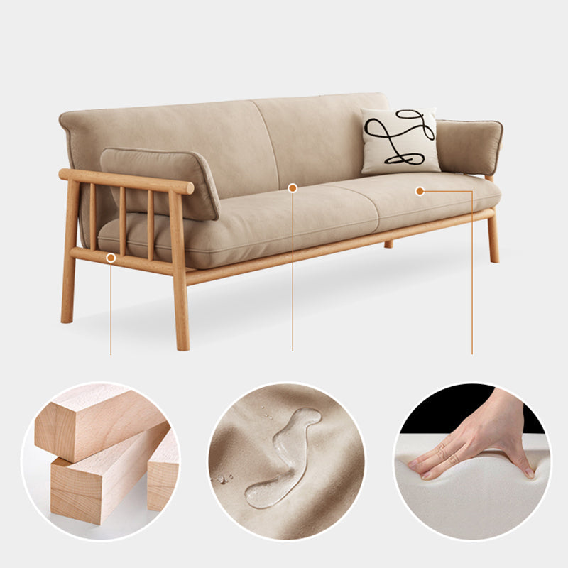 Slipcovered Single Cushion Sofa Tropical Solid Wood Seat with Pillows