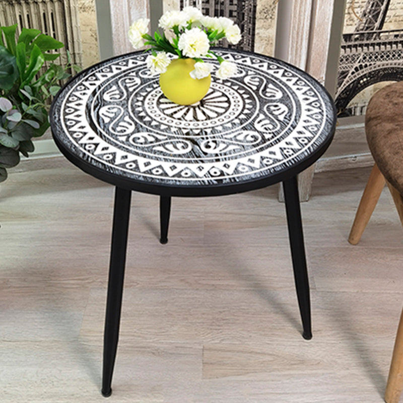 Solid Wood Round Side End Table Rustic 3 Legs End Slide Table