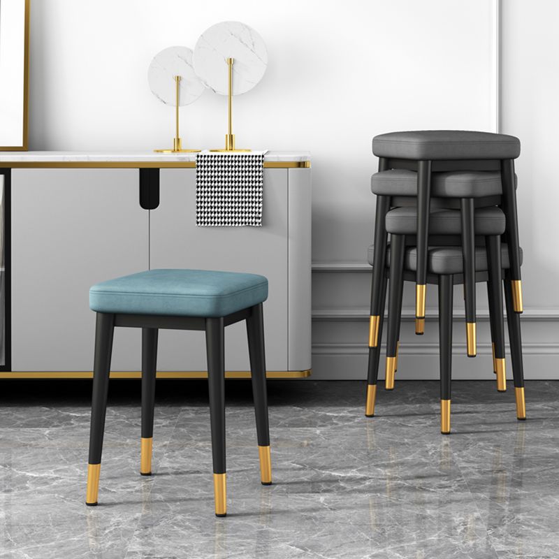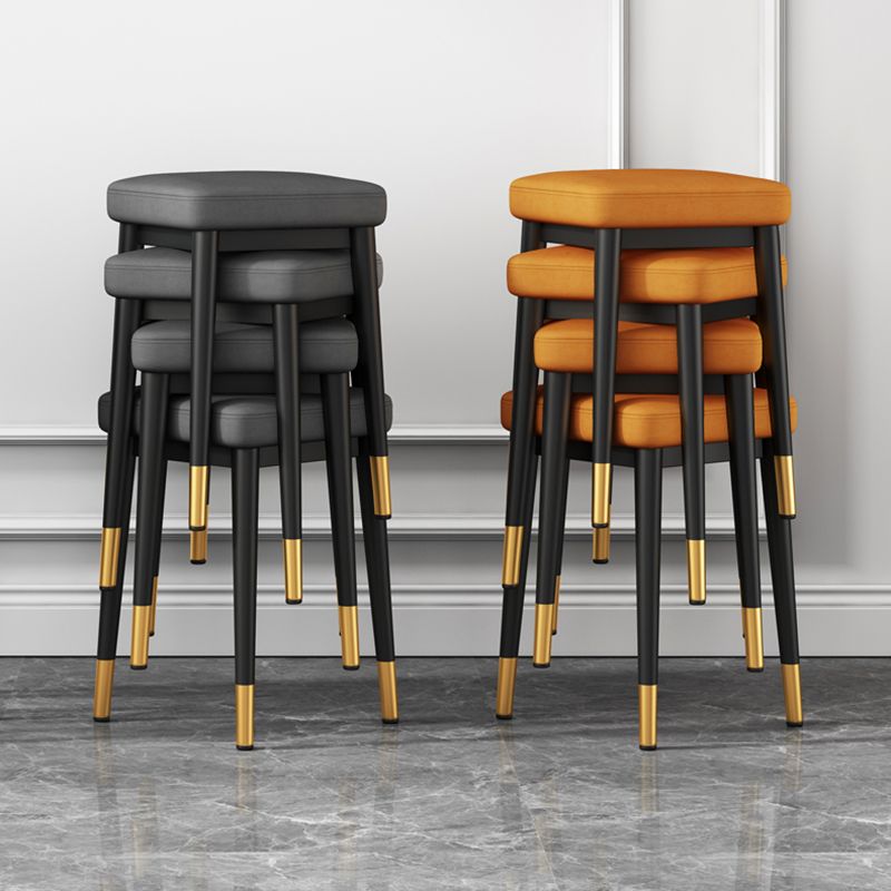 Square Footstools Ottoman Glam Solid Color Faux Leather Water Resistant Ottoman