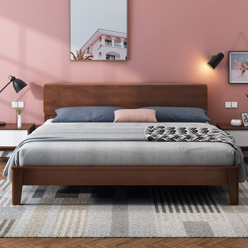 Traditional Solid Wood Panel Bed 34.65" H Low Profile Bed Frame Set in Brown